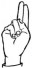 На ћирилици написано МИОМИРА КОСТИЋ састоји се из 13 слова [?]. Исписано ћириличном једноручном азбуком за глувонеме: